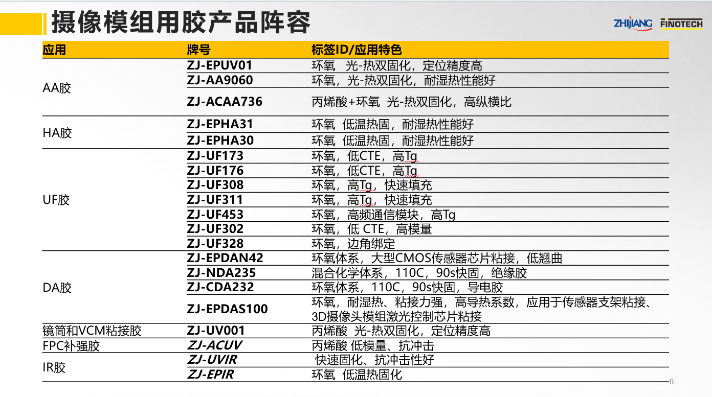 之江公司為攝像模組粘接固定推出了如下系列產(chǎn)品: