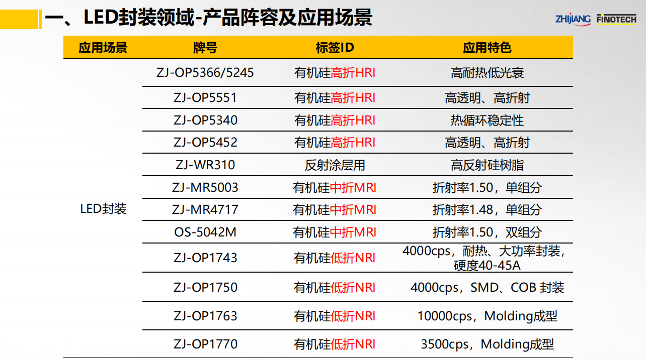 之江公司立足于中國(guó)膠粘劑行業(yè)領(lǐng)軍企業(yè)和有機(jī)硅、聚氨酯、環(huán)氧等專業(yè)膠粘劑的產(chǎn)業(yè)化優(yōu)勢(shì),具有國(guó)家級(jí)高新技術(shù)企業(yè)和國(guó)家級(jí)企業(yè)技術(shù)中心資質(zhì),依靠國(guó)家級(jí)CNAS實(shí)驗(yàn)室以及國(guó)家級(jí)博士后科研工作站,并有國(guó)際專家助力,為L(zhǎng)ED封裝行業(yè)提供高性能的固晶和封裝解決方案。其中,關(guān)鍵產(chǎn)品如下: